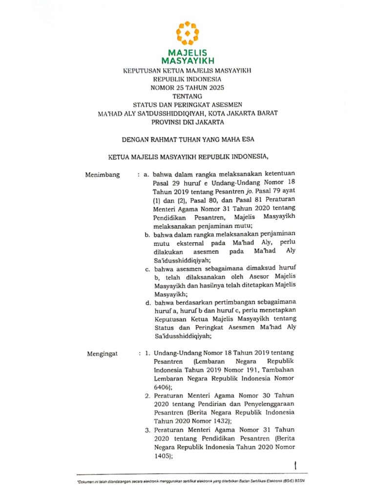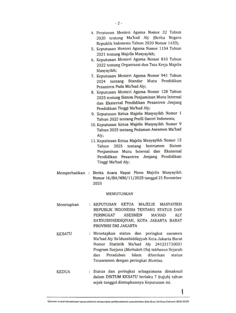 Ma’had Aly Sa’iidusshiddiqiyah Jakarta