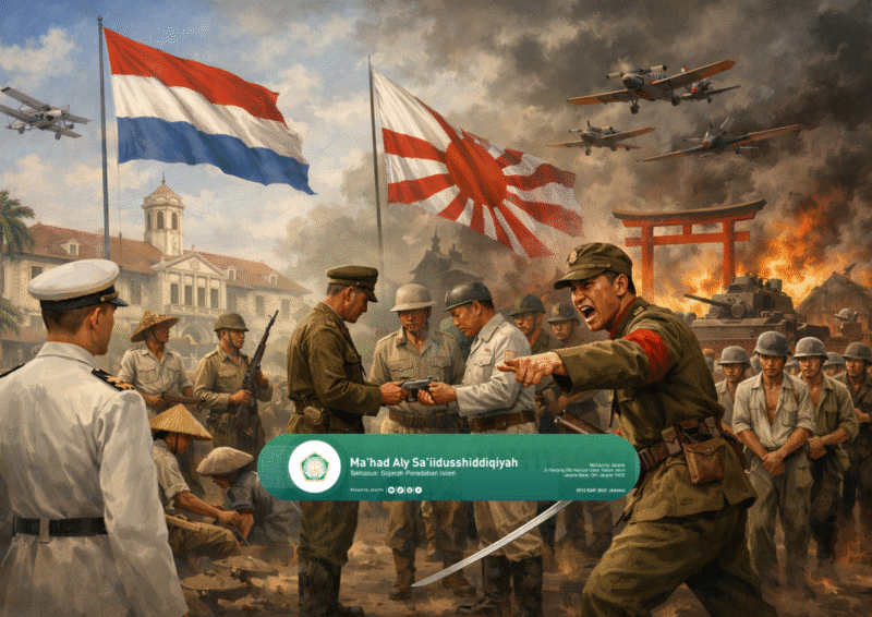 saidusshiddiqiyah.ac.id—Perang Dunia Kedua tidak hanya mengguncang Eropa, tetapi juga menjadikan Asia Tenggara sebagai ajang perebutan pengaruh negara-negara besar. Belanda, yang saat itu menguasai Indonesia sebagai Hindia Belanda, menghadapi tekanan besar dari Jepang yang sedang memperluas kekuasaannya. Indonesia pun merasakan dampak langsung perang, mulai dari serangan udara, gangguan ekonomi, hingga perubahan besar dalam kehidupan sosial dan politik.