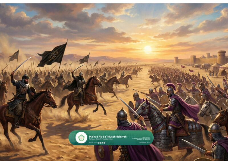 saiidusshiddiqiyah.ac.id—Tahun 634 Masehi menjadi saksi dari salah satu pertempuran paling menentukan dalam sejarah awal Islam. Di sebuah hamparan padang pasir di Syam, dua kekuatan besar bertemu. Pertempuran itu adalah Perang Ajnadayn perang besar pertama antara kaum Muslimin dan Romawi yang membuka pintu menuju penaklukan Syam. Perang ini bukan hanya soal keunggulan senjata, tetapi soal visi, keberanian, dan keyakinan.